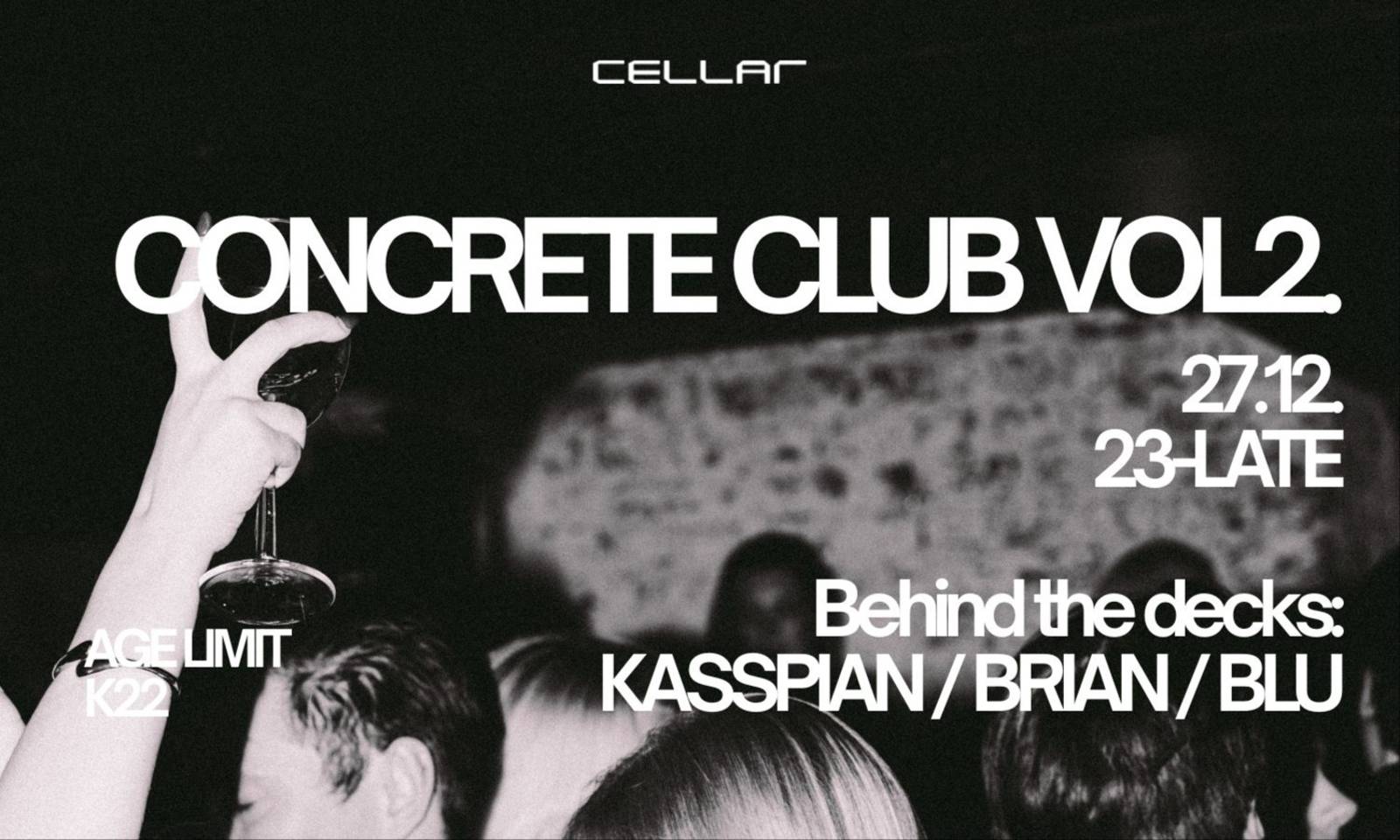 Join us on 27th of December! CONCRETE CLUB IS BACK. Cellar will be open from 23:00 until the early hours of the morning, bringing you an unforgettable night of music and celebration. Our DJs trio for the night is KASSPIAN / BRIAN & BLU - you’ll love them. Purchase your advance tickets early, as we always sell a very limited number of them. Advance tickets grants you VIP-line access. Age Limit on Fridays 20 and on Saturdays 22. Cloakroom will be purchased at the entrance for the price of 3,90€