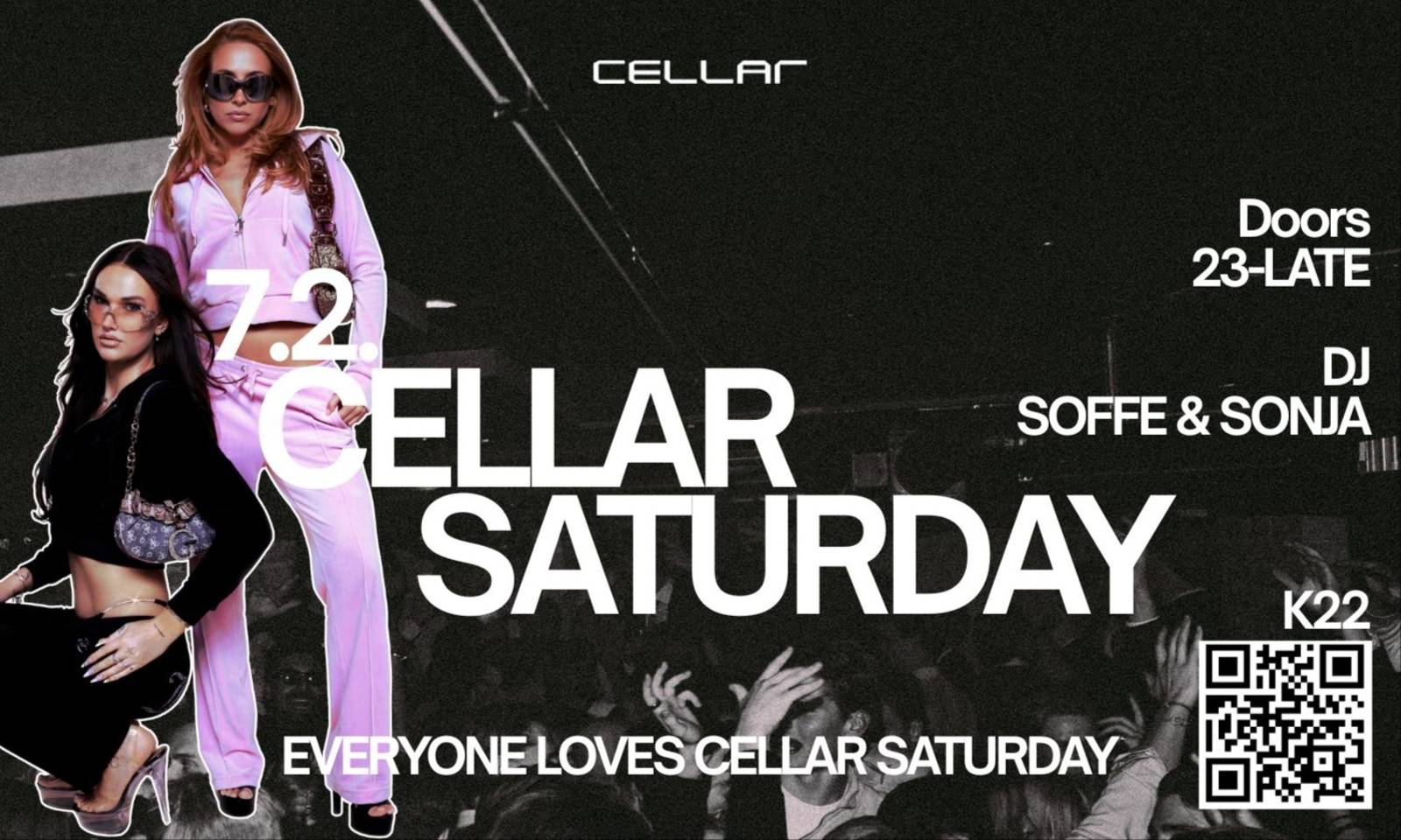 Join us on 7th of Feb - Cellar Saturday Everyone loooooves Cellar Saturdays. House music, easy techno, singalongs & pop. The cellar will be open from 23:00 until the early hours of the morning, bringing you an unforgettable night of music and celebration. Our DJs for the night are SOFFE AND SONJA – you’ll love them. Purchase your advance tickets early, as we always sell a very limited number of them. Advance tickets grant you VIP-line access. Age limit on Fridays is 20 and on Saturdays 22. Cloakroom fee is 3,90€, payable at the entrance.