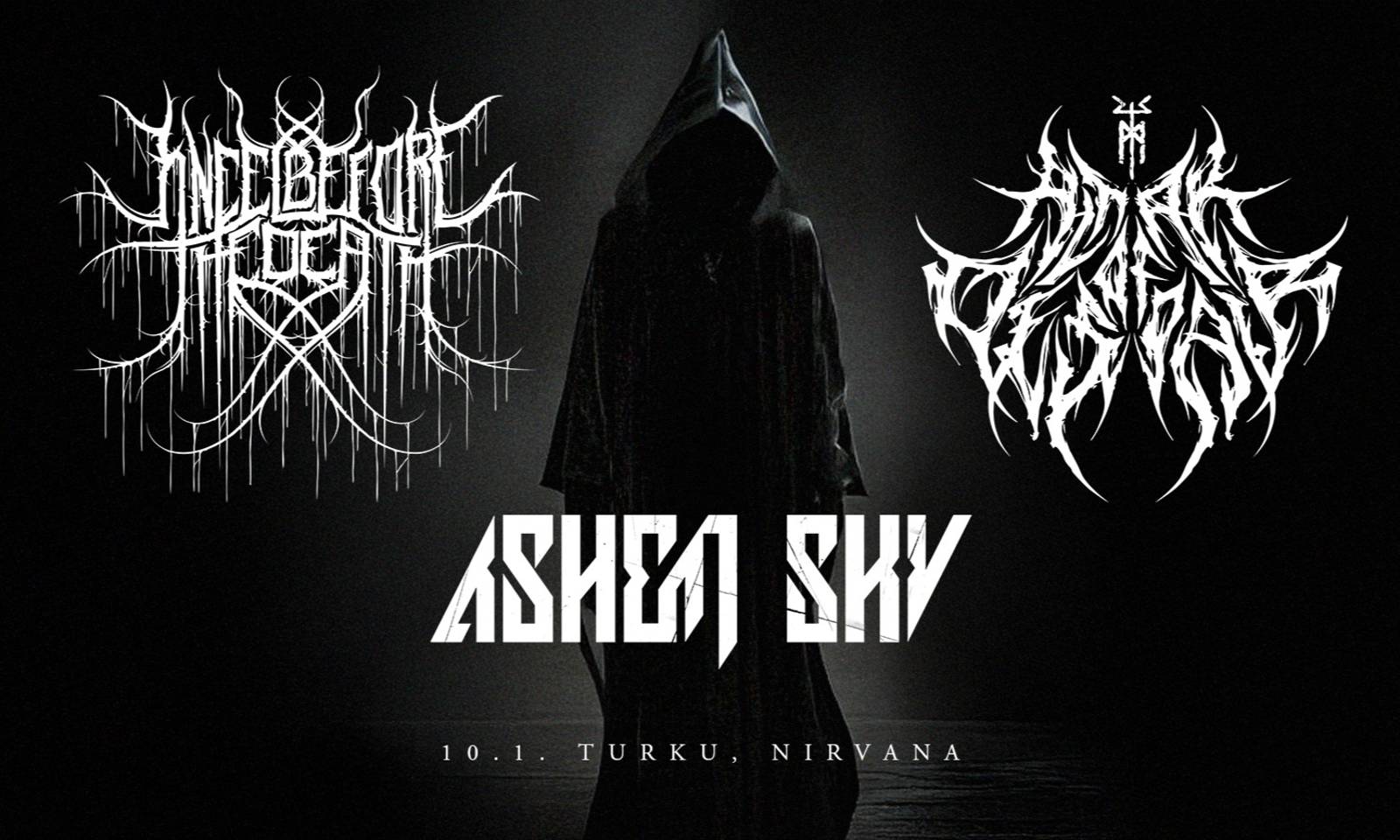 La 10.1.2026 @ Fuusio / Nirvana, Turku KNEEL BEFORE THE DEATH ALTAR OF DESPAIR ASHEN SKY Ovet klo 21.00 Ennakkoliput 8€, ovelta 10€ mikäli vielä saatavilla. K18. Narikka 3,50€. Fuusion jäsenkortilla ilmainen narikka! KNEEL BEFORE THE DEATH Kneel Before The Death on vuonna 2013 perustettu äärimetalliyhtye. Yhtye yhdistää musiikissaan elementtejä sinfonisesta metallista, black metallista, deathcoresta sekä elektronisesta musiikista luoden itselleen tunnistettavan äänimaiseman. Alkutaipaleen aikana yhtye julkaisi kolme EP:tä, jotka herättivät vahvasti kiinnostusta suomalaisen metalliskenen keskuudessa. Kneel Before The Death löysi uuden musiikillisen suunnan vuonna 2023 julkaistujen singlejen ’Eternal Sleep’ ja ’I Am The One’ myötä. Yhtye on ollut viimeisen vuoden aikana aktiivinen keikkarintamalla ja esiintynyt muun muassa Hellsinki Metal Festival Pre-Party -tapahtumassa sekä Tuskan jatkoilla. Kneel Before The Deathin debyyttialbumi julkaistiin kesäkuussa 2025 Ranka Kustannuksen kautta. ALTAR OF DESPAIR Altar of Despair on yhtye, joka yhdistää suuret tunteet, mieleenpainuvat musiikilliset elementit ja mikä tärkeintä, raivokkaan energian, joka ei jätä ketään kylmäksi. Tämä deathcore -yhtye vie kuuntelijansa matkalle pimeyden syövereihin, jossa genren peruspilarit saavat tuoreen lähestymistavan ja modernin twistin. Espoolainen Altar of Despair julkaisi vuonna 2024 debyyttialbuminsa ja vuonna 2025 yhtye on julkaissut sinkut "Disconnection" ja "Vermicide" tulevalta ”Severance” EP:ltä. Raskas. Raskaampi. Altar of Despair. ASHEN SKY ASHEN SKY on helsinkiläinen modern metal -yhtye. Yli puolen miljoonan streamin sekä lukuisten keikkojen myötä yhtye on löytänyt paikkansa kotimaisessa metalliskenessä. Yhtye on jakanut lavoja mm. Dead by Aprilin, Self Deceptionin, Oceans Ate Alaskan, sekä muiden tunnettujen yhtyeiden kanssa esimerkiksi Helsinki Techfestillä sekä Hellsinki metal festivalin- ja Tuskan jatkoklubeilla. ASHEN SKYn musiikissa yhdistyy elementtejä niin modernimmasta- kuin perinteisemmästäkin metallista. Tarttuvat riffit, kertosäkeet sekä murskaavat breakdownit deathcorevaikutteineen sulautuvat melodisiin ja melankolisiin sävyihin, luoden voimakkaan kontrastin, joka kumpuaa sekä aggressiivisuudesta että tunteellisuudesta. Yhtyeen intensiiviset, energiset sekä yllätykselliset live-esiintymiset ovat jättäneet yleisölle ainutlaatuisen ja mieleenpainuvan kokemuksen. Vuoden 2025 alussa tapahtuneen uudelleenbrändäyksen ja uuden laulajan, Olli Laakan, liittymisen myötä bändi astuu uuteen aikakauteen julkaisemalla uutta musiikkia pitkin vuotta, mikä huipentuu odotettuun toiseen albumiin alkuvuodesta 2026.