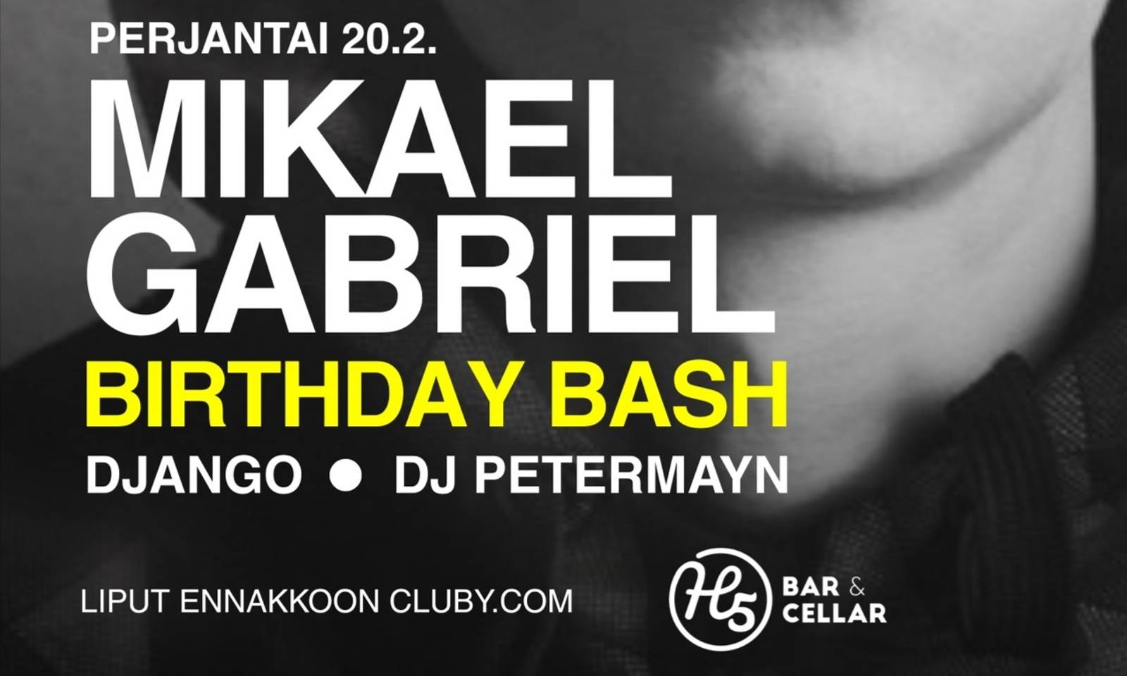 Suomen rapin ja popin kirkkaimpiin tähtiin lukeutuva Mikael Gabriel juhlistaa huikeaa 15-vuotisen uran merkkipaalua ainutlaatuisella tavalla Tavara-Asemalla, Tampereella perjantaina 20. helmikuuta 2026. H5 Bar & Cellar järjestää keikan viralliset jatkot. Nähtäväksi jää kipuaako MG kyseisenä iltana myös H5' n lavalle... Ovet klo 22.00 Ennakkolipulla jononohitus Liput 10€ K19