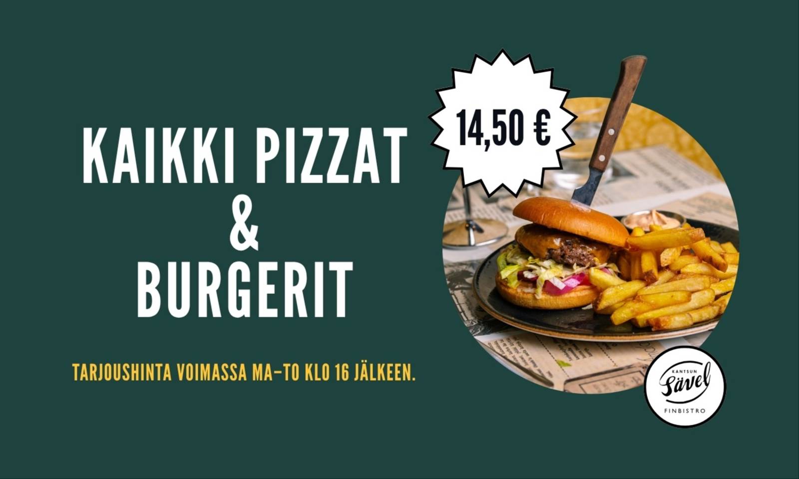 Tee ostosreissustasi vähän herkullisempi! Kantsun Sävel tarjoaa arkisin ma-to klo 16 jälkeen kaikki pizzat ja burgerit vain 14,50 € / kpl. Olitpa sitten palaamassa töistä, pyörähtämässä kaupoilla tai koukkaamassa lasten kanssa hakemaan iltapalaa, Sävelessä saat maistuvan tauon. Meiltä löydät rennon fiiliksen, reilut annokset ja rauhallisen hetken kiireen keskelle. Tutustu ruokalistaan: https://kantsunsavel.fi/menu/a-la-carte/ Kun arkesi kaipaa vähän parempaa säveltä, tiedät minne suunnata. Tervetuloa herkuttelemaan!