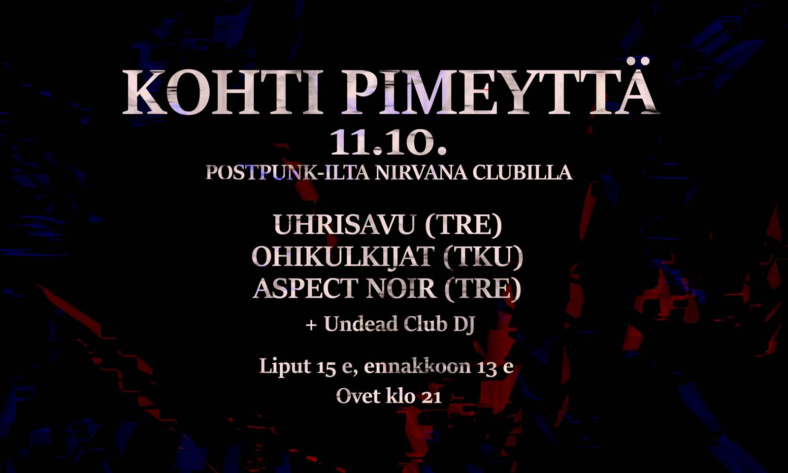 21:00 ovet / Undead Club dj 21:30 OHIKULKIJAT 22:30 ASPECT NOIR 23:30 UHRISAVU