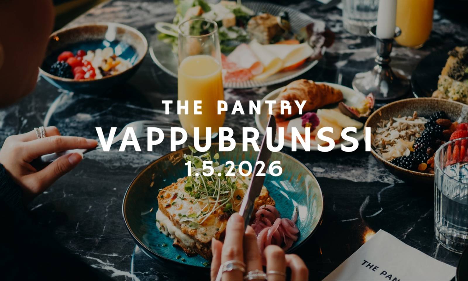 Lämpimästi tervetuloa viettämään vappua rennon juhlavissa tunnelmissa The Pantry Hakaniemeen perjantaina 1.5.2026! Katamme pöydän täyteen kevään parhaita makuja – yhdistelmän klassista vappufiilistä, sesongin raikkautta ja The Pantryn tuttua laatua. Perjantaina 1.5.2026 Kattaukset klo 12.00 ja 15.00 Hinta 62 € / hlö, Lapset alle 12 v. -50 % Lämpimästi tervetuloa! 🎈🥂