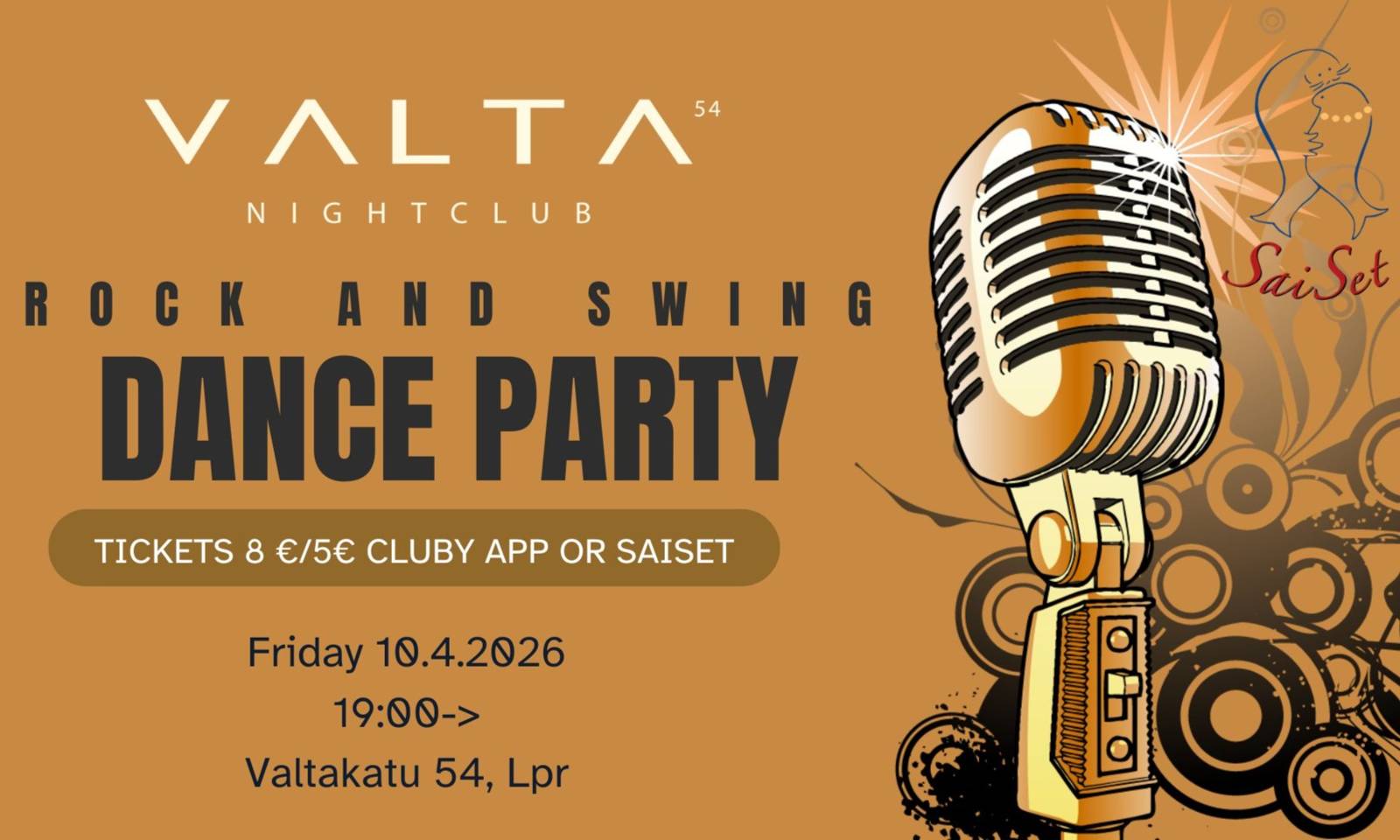 Perjantaina 6.3. VALTA. Rock and Swing dance party Laita tanssikengät jalkaan ja helmat heilumaan 🎶 Rock’n’roll ja Swing musiikki valtaavat taas yökerho Vallan tanssilattian. Illan aikana soitamme monipuolisesti svengaavaa musiikkia, minkä tahdissa voit tanssia Lindy hoppia, rockabillyä, fuskua, boogie woogieta, foksia tai vaikka buggia. Voit myös tulla fiilistelemään ja kuuntelemaan hyvää musiikkia ja nauttimaan teemadrinkkejä. Information 📍 Yökerho Valta, Valtakatu 54, Lpr 🕘 Perjantai 10.4.2026 klo 19 alkaen 🎧 DJ Proud Mary 🏷️ 8 € / 5 € Cluby app / SaiSet Welcome! Nähdään Vallassa!
