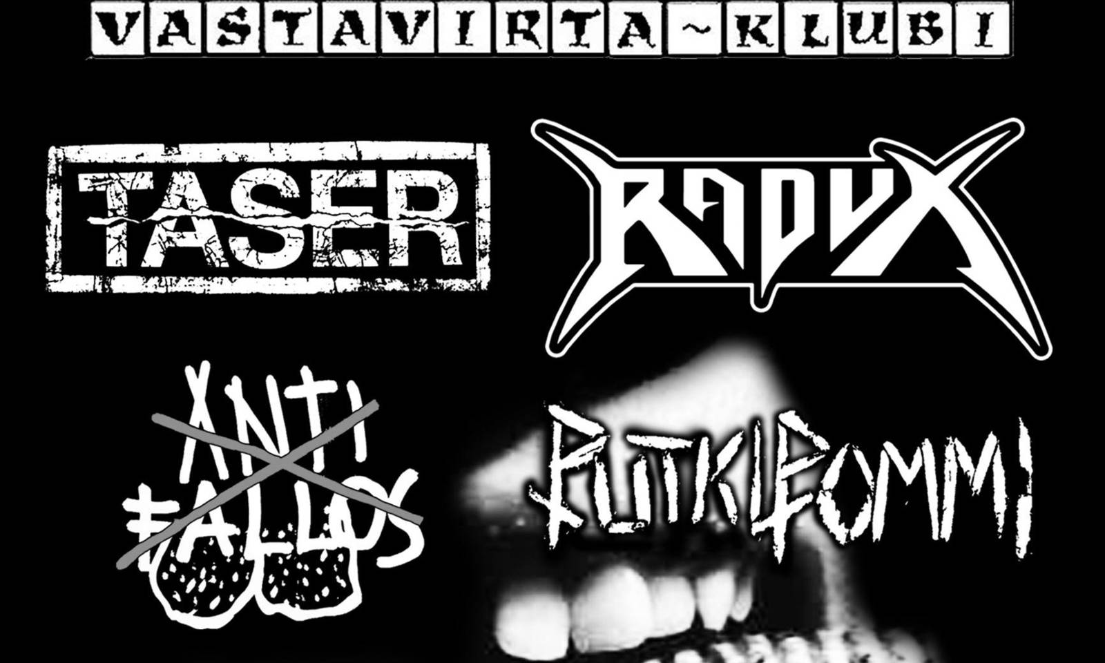 Taser, Radux, Live//Suffer, Putkipommi, Anti fallos Vastavirta 6.2.2026 --- TASER https://tasersludge.bandcamp.com/ RADUX https://svartrecords.bandcamp.com/album/disaster-imminent LIVE//SUFFER https://livetosuffer.bandcamp.com/ PUTKIPOMMI https://putkipommi.bandcamp.com/album/tuhottu-tulevaisuus ANTI FALLOS